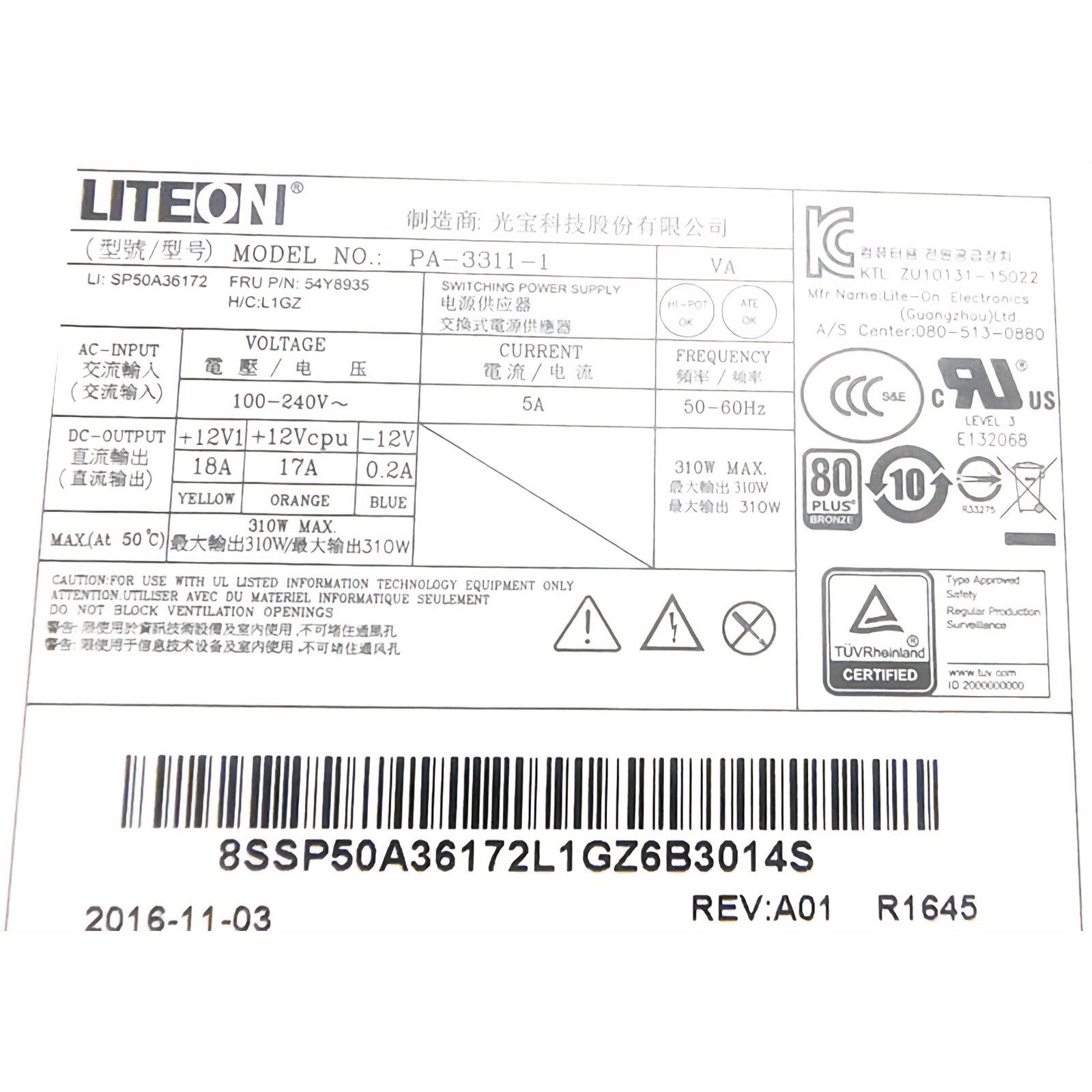 Liteon PA-3311-1 54Y8935 HC:L1GZ
